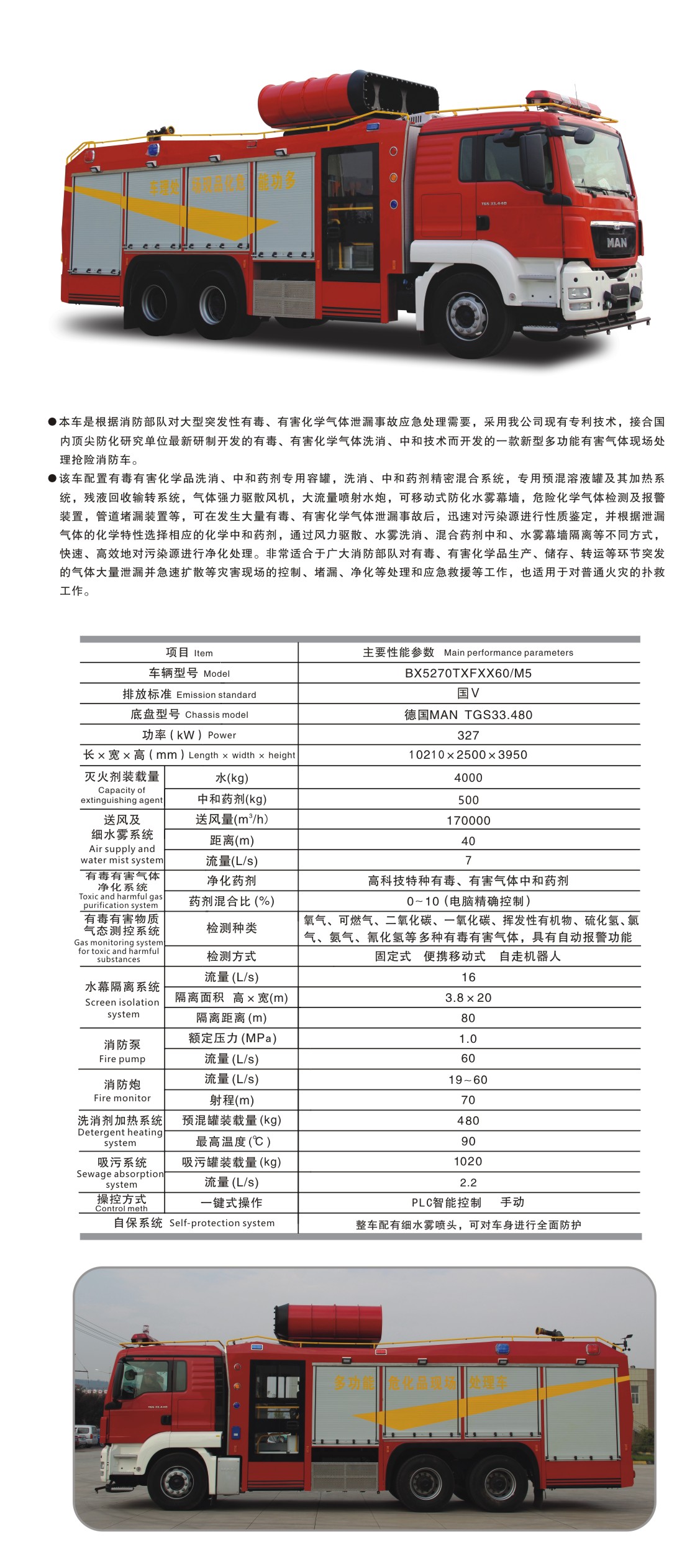 BX5270TXFXX60/M5 危化品現(xiàn)場處理消防車