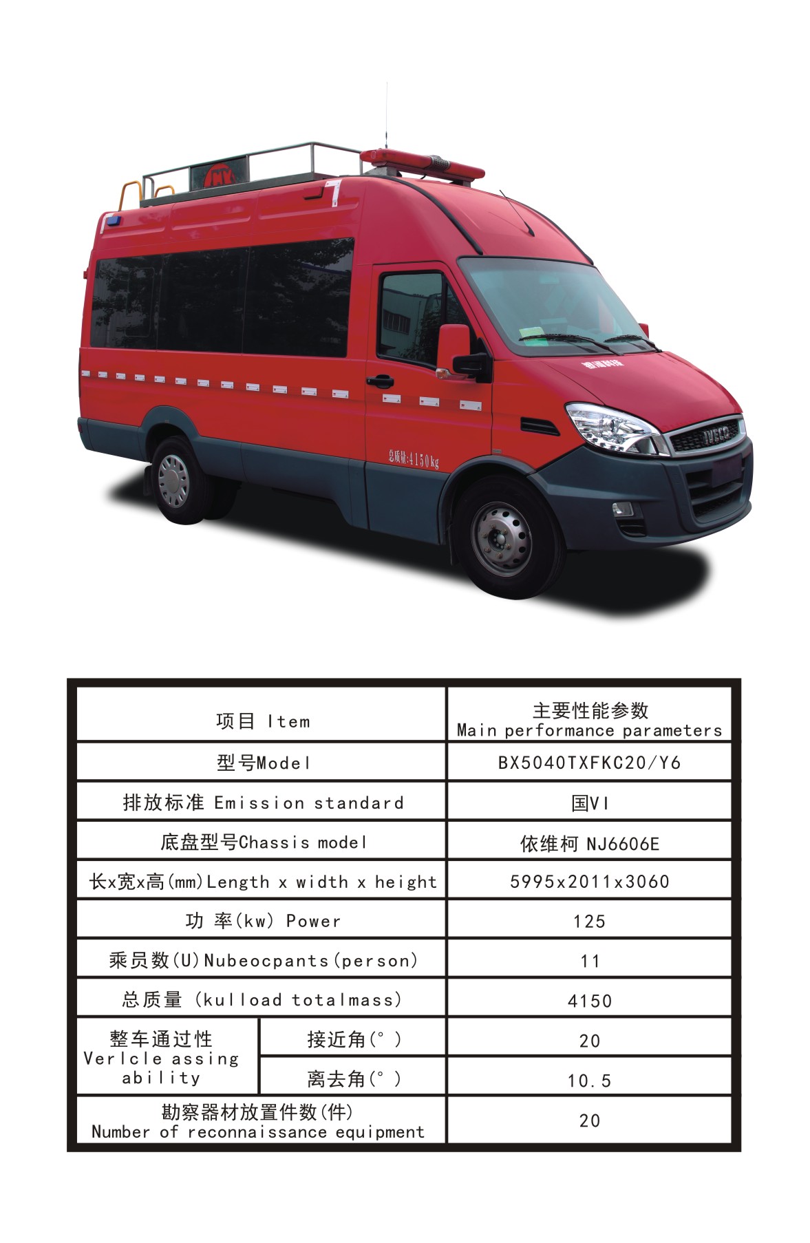 BX5040TXFKC20/Y6勘察消防車