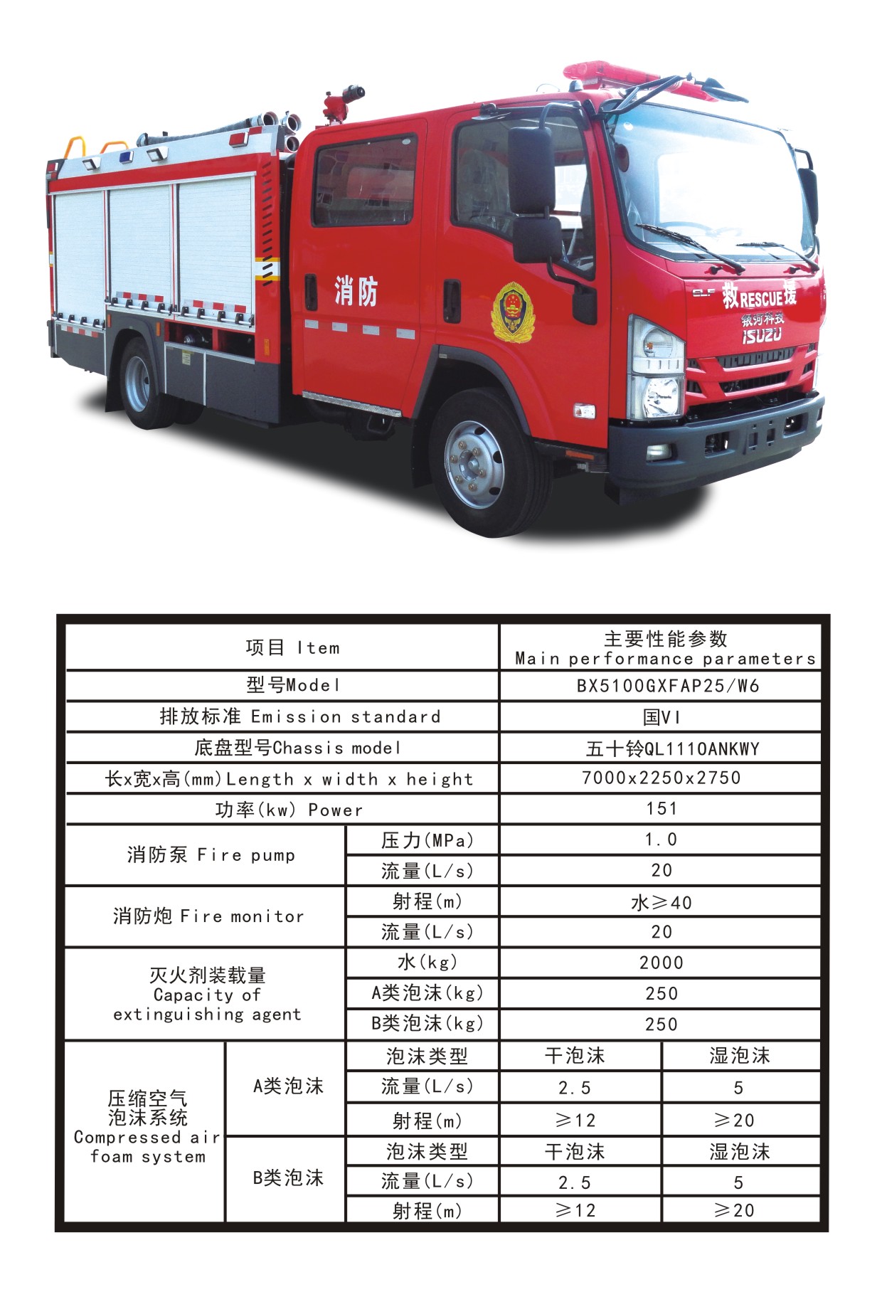 BX5100GXFAP25/W6壓縮空氣泡沫消防車