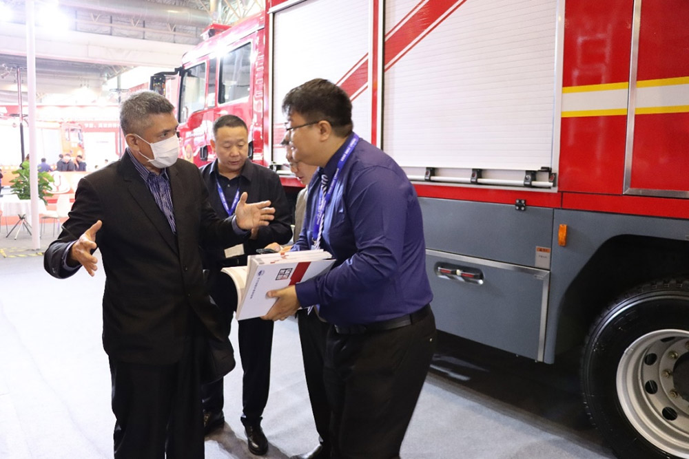 銀河消防公司作為展會(huì)的老牌參展商,此次展會(huì)推出的消防車輛,以其新穎的外觀和實(shí)用性能,吸引了一批批專家和行業(yè)代表前來(lái)觀摩,參展觀眾較往年也有了明顯變化,除全國(guó)各省份消防救援總隊(duì)、中石油、武警學(xué)院、專業(yè)檢測(cè)機(jī)構(gòu)等之外,境外參展人群創(chuàng)造新高。來(lái)自俄羅斯、印度、阿根廷和土耳其等國(guó)家的專業(yè)買家,與公司專業(yè)技術(shù)人員就技術(shù)引進(jìn)、裝備采購(gòu)事宜進(jìn)行了廣泛溝通與深入交流,銀河消防公司產(chǎn)品的研發(fā)能力和技術(shù)水平得到了高度認(rèn)可。