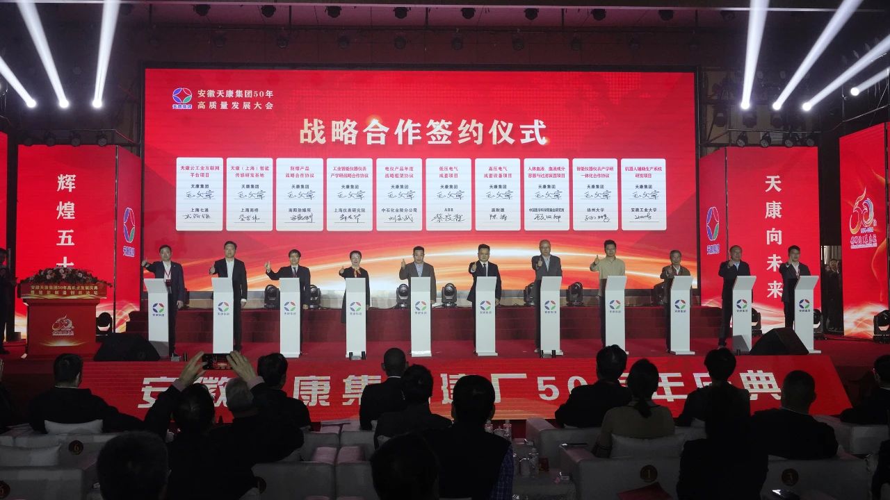 ABB公司、中石化金陵分公司、施耐德公司、上海儀表研究院、中國醫(yī)學(xué)科學(xué)院輸血研究所、南陽防爆所、揚(yáng)州大學(xué)、上海南橋、安徽工業(yè)大學(xué)、上海七通公司代表在會上分別與安徽天康集團(tuán)簽署了“戰(zhàn)略合作協(xié)議”。