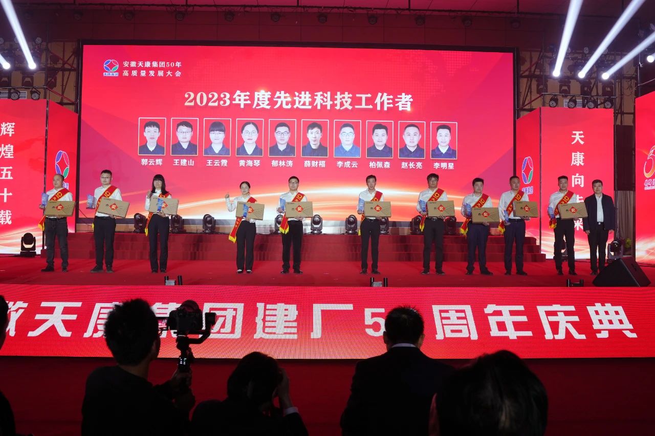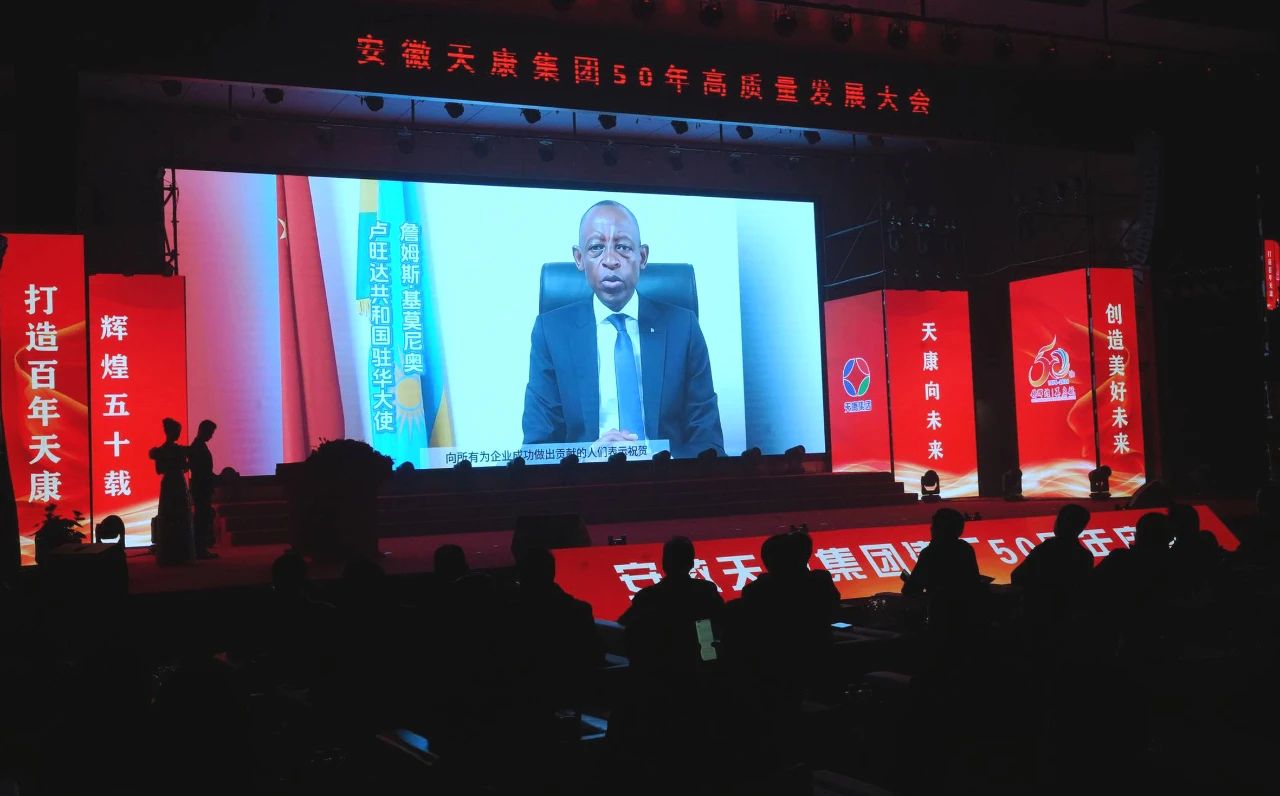 會議宣讀并展示了來自全國各地近百封賀信和祝賀視頻,同時展示了安徽天康集團(tuán)50年來的重大科技成果。