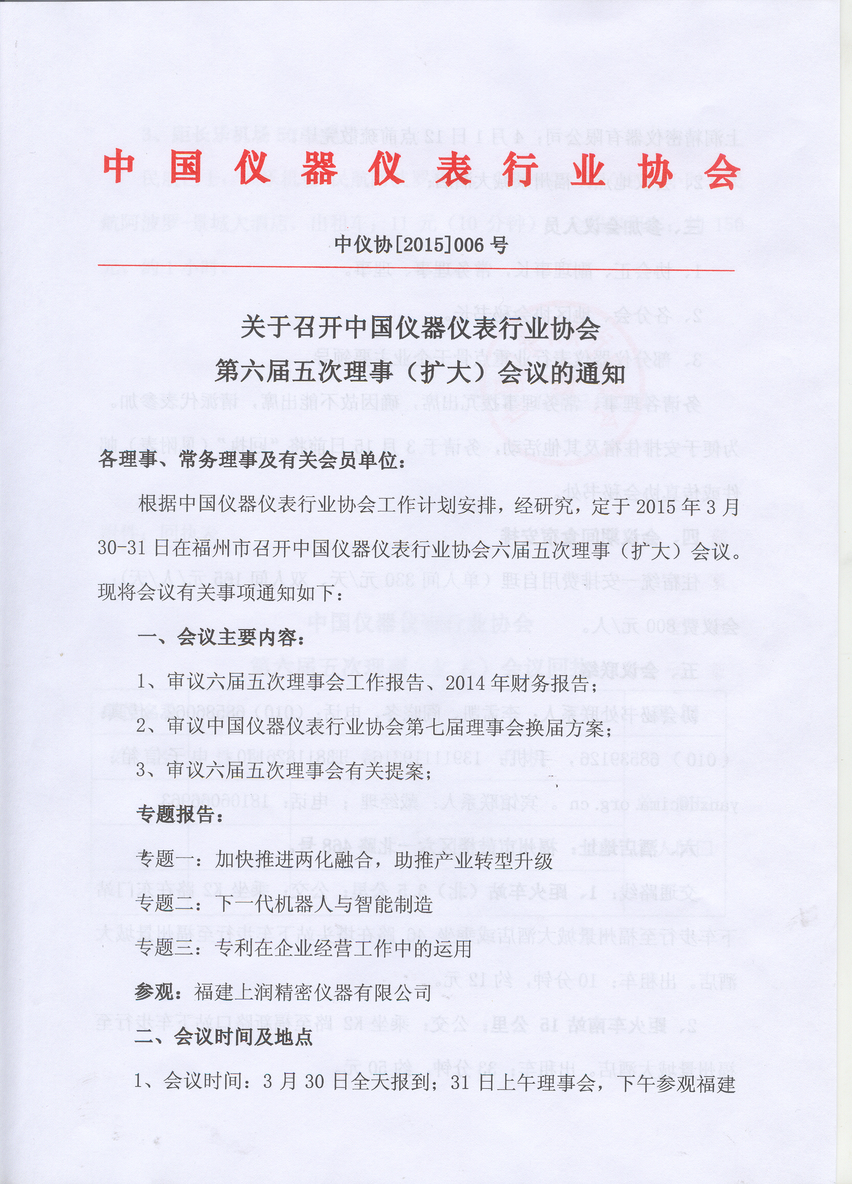 關(guān)于召開中國儀器儀表行業(yè)協(xié)會第六屆五次理事(擴(kuò)大)