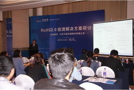 2019年4月26日,天瑞儀器RoHS2.0解決方案研討會巡演首站在浙江寧波香格里拉大酒店舉行。來自電子電器設備制造行業(yè)多名企業(yè)代表參與此次會議,聽取了天瑞儀器針對RoHS2.0法規(guī)的最新進展和應對方案,現(xiàn)場氣氛十分熱烈。