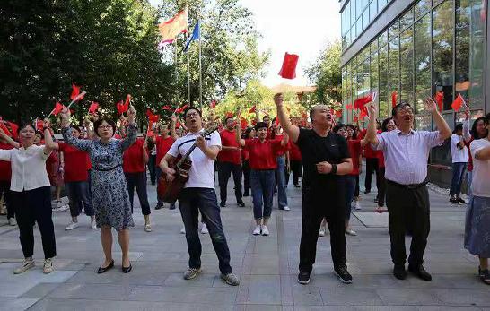 參加活動(dòng)人員手持國(guó)旗,興高采烈,以齊聲高唱《我和我的祖國(guó)》的快閃形式,充分表達(dá)了中機(jī)聯(lián)系統(tǒng)職工對(duì)祖國(guó)母親熱烈而真摯的情感,拉開(kāi)了頒獎(jiǎng)活動(dòng)的序幕。