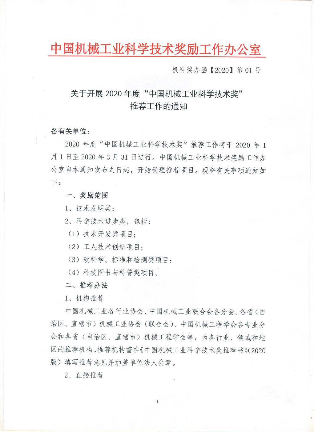附件:關(guān)于開展中國機械工業(yè)科學(xué)技術(shù)獎推薦工作的通知