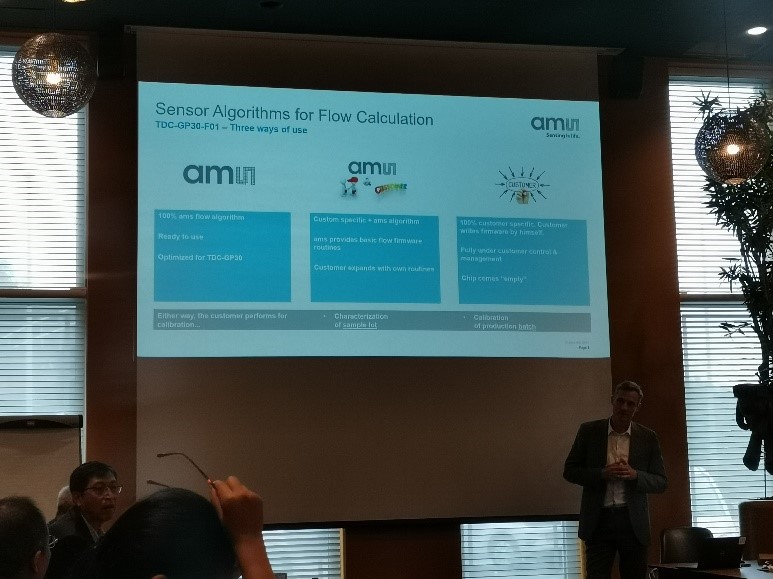 AMS向考察團介紹了溫度和濕度傳感器、壓力、流量傳感器產品以及相關技術,對上述傳感器產品從產品工作原理、性能指標、應用領域、現場演示四個維度做了詳細介紹。