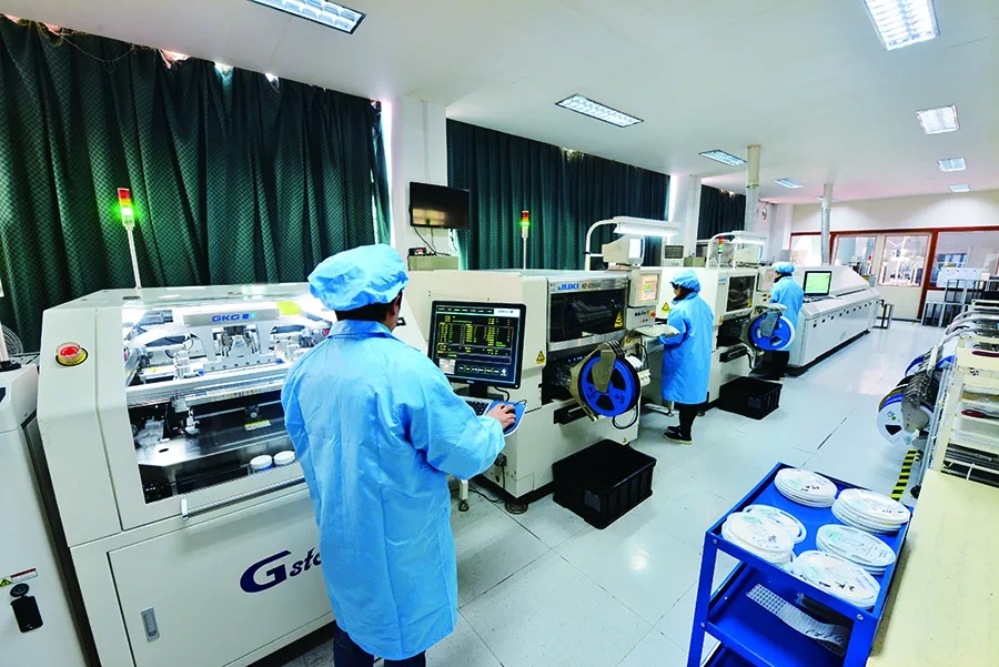 2020年的流金八月,驕陽似火,虹潤公司智能儀表生產(chǎn)線改造擴(kuò)建項(xiàng)目施工現(xiàn)場,施工人員正忙著安裝各類基建設(shè)備。與此同時(shí),相距不到百米的公司智能制造工廠內(nèi),自動(dòng)點(diǎn)焊機(jī)器人在不停地運(yùn)轉(zhuǎn),一片片電路板在全自動(dòng)貼片機(jī)上不斷地向前傳送……生產(chǎn)車間內(nèi)亦是一片繁忙景象。