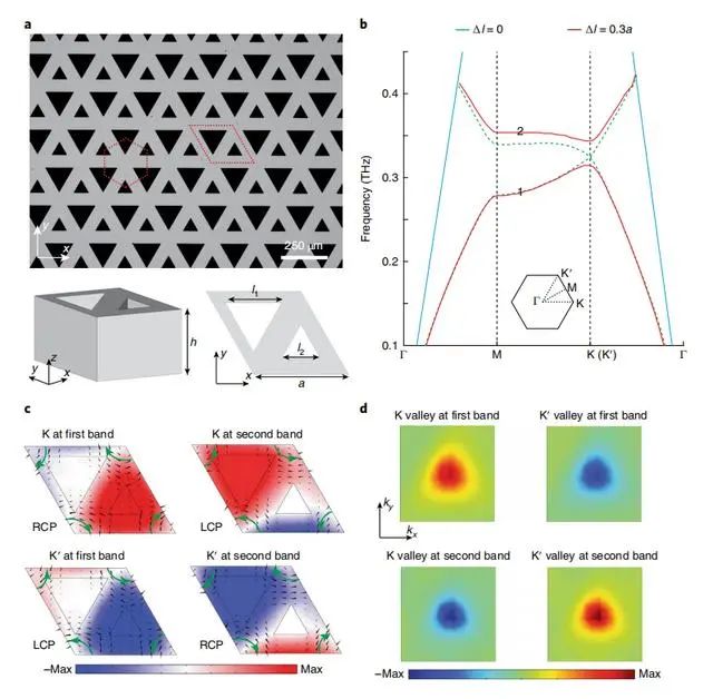 為解決上述難題,研究團隊以“谷態”光子拓撲絕緣體為基礎,通過全硅芯片上的尖銳彎折實驗,證明了太赫茲拓撲谷傳輸的強大能力。