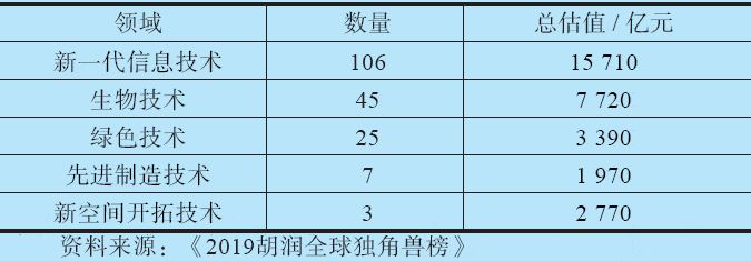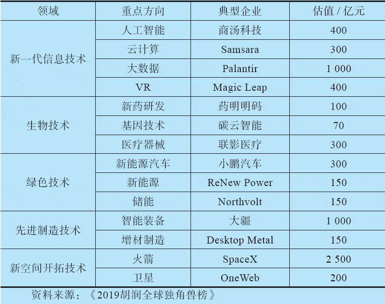 表1.3 2019 年全球技術驅動獨角獸重點領域與典型企業(yè)