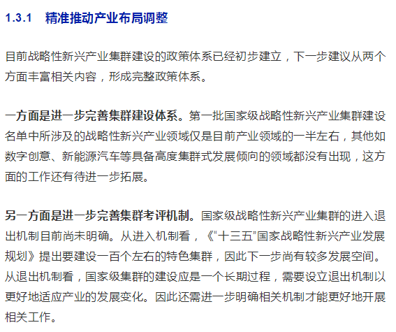 三是產業(yè)布局的變化。“十四五”時期戰(zhàn)略性新興產業(yè)的產業(yè)布局主要需要關注兩方面的變化,一方面是國家區(qū)域協(xié)調發(fā)展戰(zhàn)略對于新興產業(yè)提出了新的要求,在粵港澳大灣區(qū)、長江經濟帶、長江三角洲區(qū)域一體化、京津冀協(xié)同發(fā)展等國家戰(zhàn)略中均對戰(zhàn)略性新興產業(yè)發(fā)展提出了對應的布局要求。另一方面是戰(zhàn)略性新興產業(yè)本身布局政策著力點的變化。隨著產業(yè)規(guī)模的快速擴大,產業(yè)布局政策關注點的層級也需快速提升,不應再將大量精力投入具體的產業(yè)項目,而應將重點轉向區(qū)域集群的建設。通過在重點領域推動重點集群的發(fā)展實現整個產業(yè)競爭力的全面提升。