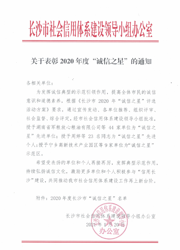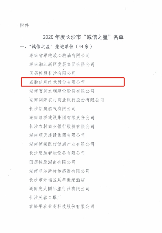 為推進長沙市社會信用體系建設,提高全社會信用水平,樹立“信用長沙”品牌,營造優(yōu)良營商環(huán)境,根據(jù)《長沙市2020年“誠信之星”評選活動方案》要求,經(jīng)過層層推薦、審核、評審,威勝信息技術(shù)股份有限公司榮獲長沙市社會信用體系建設領導小組辦公室頒發(fā)的“誠信之星”榮譽稱號。