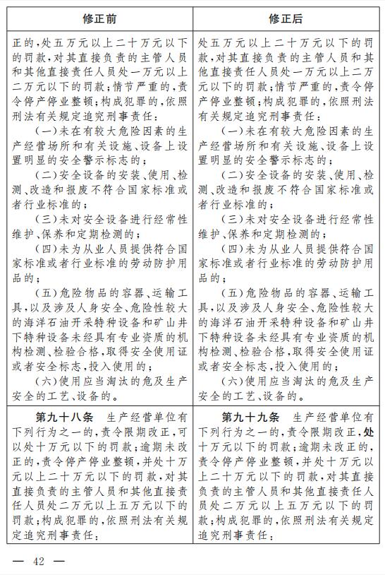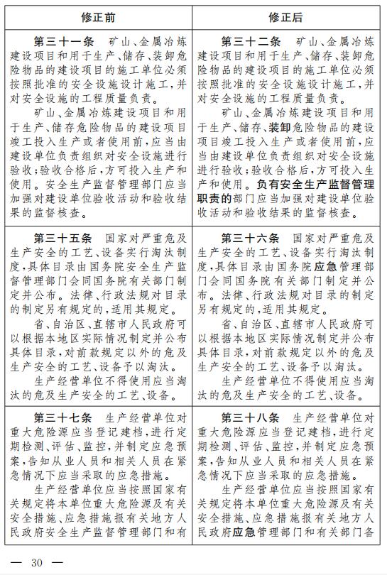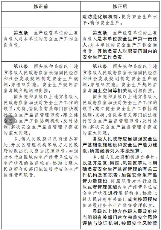 《中華人民共和國安全生產法》根據本修正案作相應修改, 重新公布。
