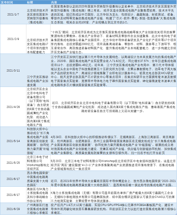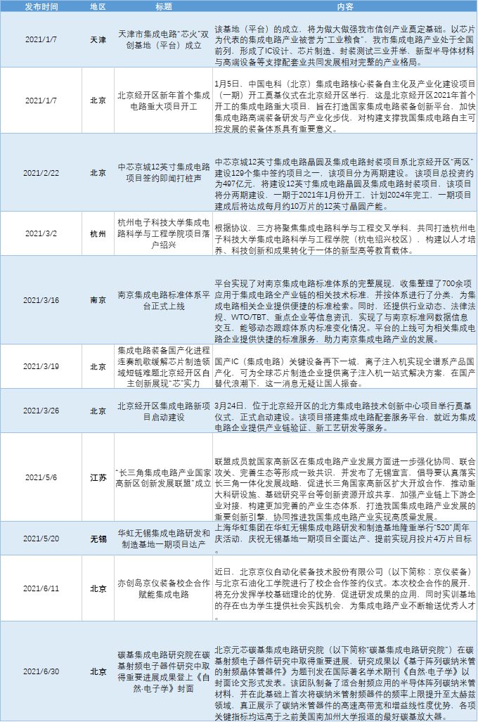 2021年集成電路產(chǎn)業(yè)集群重點(diǎn)事件