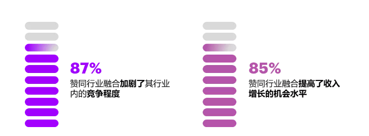 埃森哲調(diào)研發(fā)現(xiàn),87%企業(yè)高管認為,行業(yè)融合是長期增長的核心推動力。然而,隨著行業(yè)界限逐漸模糊,新的競爭力量涌現(xiàn),企業(yè)戰(zhàn)略也面臨含糊不清的困境。