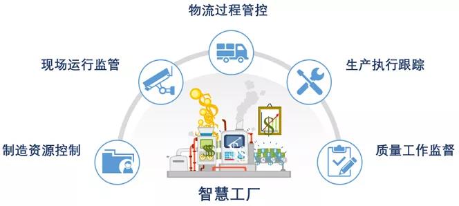 智慧工廠包含工廠運營管理的五個方面,制造資源控制、現(xiàn)場運行監(jiān)管、物流過程管控、生產(chǎn)執(zhí)行跟蹤、質量工作監(jiān)督等。