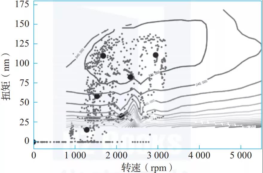 圖2-11中頂部圈定的區(qū)域是試驗標定的最優(yōu)油耗區(qū),圖中的點是用戶駕駛行為的油耗區(qū)。根據大數據分析,就可以調整發(fā)動機管控參數,實現面向實際用戶駕駛的最優(yōu)油耗。
