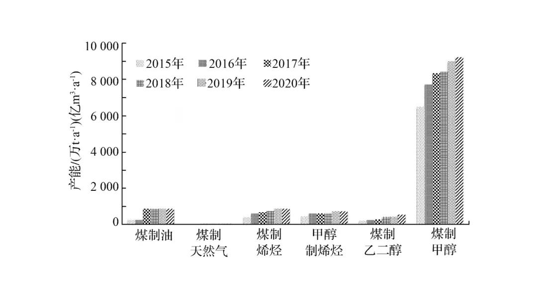 “十三五”以來,我國現(xiàn)代煤化工無論是在產(chǎn)業(yè)發(fā)展、基地建設(shè),還是在技術(shù)創(chuàng)新等方面均取得顯著成績,并繼續(xù)保持國際領(lǐng)先地位,為實施我國石化原料多元化戰(zhàn)略及提升國家能源戰(zhàn)略安全保障能力提供了重要支撐。由于近年煤制甲醇發(fā)展較快,產(chǎn)業(yè)規(guī)模大,先進(jìn)技術(shù)和大型化裝置規(guī)模占比高,筆者將煤制甲醇也一并納入現(xiàn)代煤化工產(chǎn)業(yè)進(jìn)行研究。
