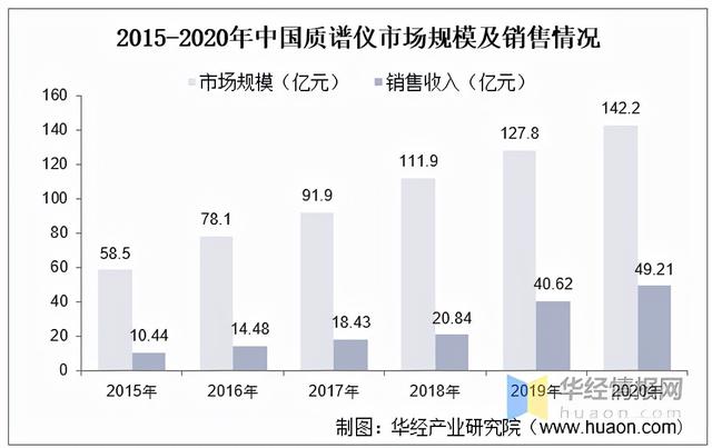 從國內市場來看,中國質譜儀市場規模不斷擴大,銷售收入逐年增長。據統計,2020年中國質譜儀行業市場規模為142.2億元。其中銷售收入為49.21億元,同比增長21.2%。