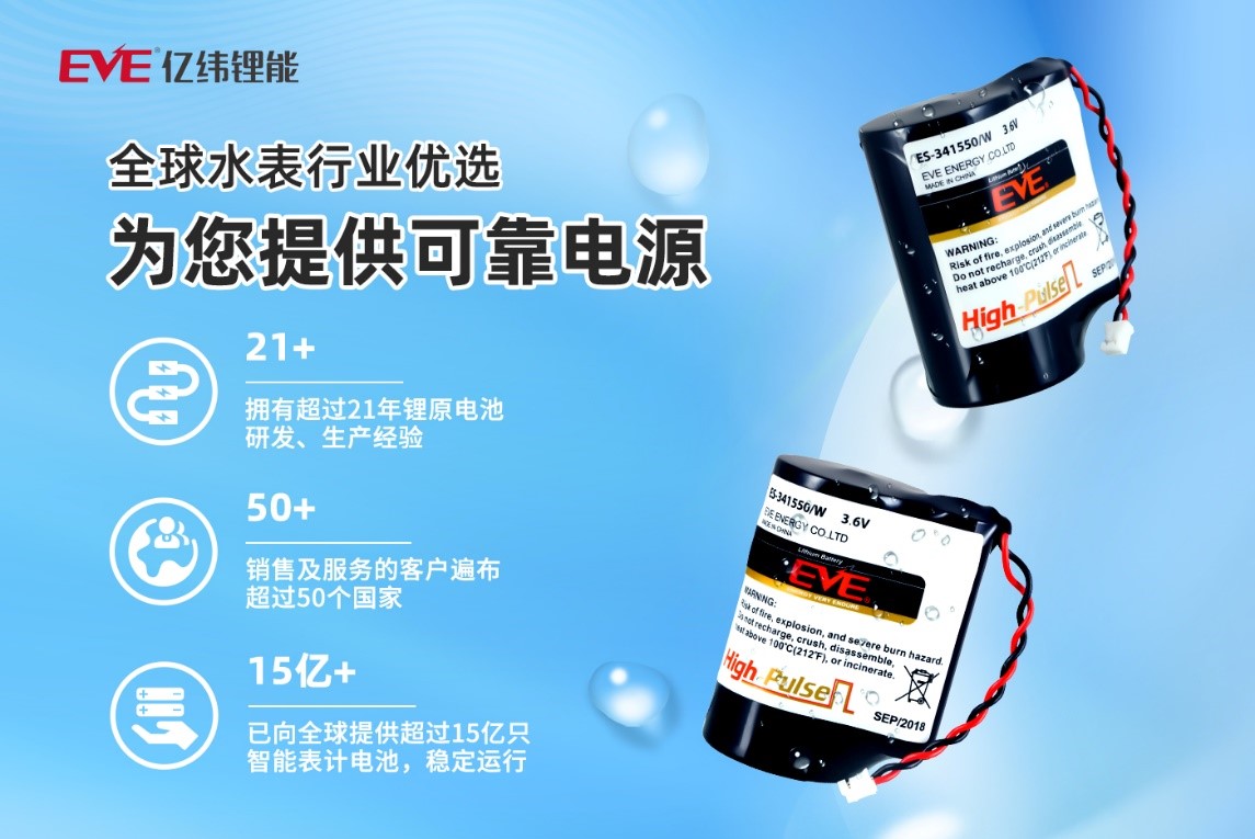 作為萬物互聯綜合電源解決方案提供商,億緯鋰能具備高可靠性的智能水表電源解決方案,憑借超過16年應用驗證、先進的技術優勢和高質量的產品,贏得了市場的高度信賴。