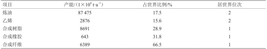 表 1 2019 年我國(guó)石化產(chǎn)業(yè)主要產(chǎn)品產(chǎn)能的世界位次