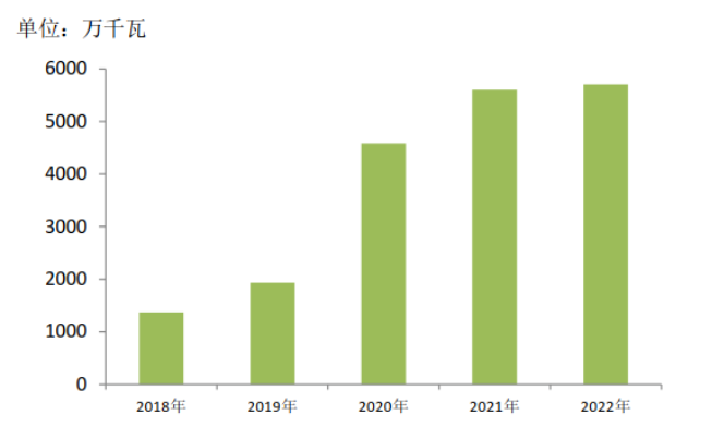 圖5:近五年風電機組產量變化趨勢圖