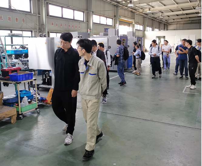 學(xué)員們先后參觀了生產(chǎn)車間、鈑金車間和組裝調(diào)試車間,向一線員工了解了生產(chǎn)工藝過程及生產(chǎn)管控細(xì)節(jié)。