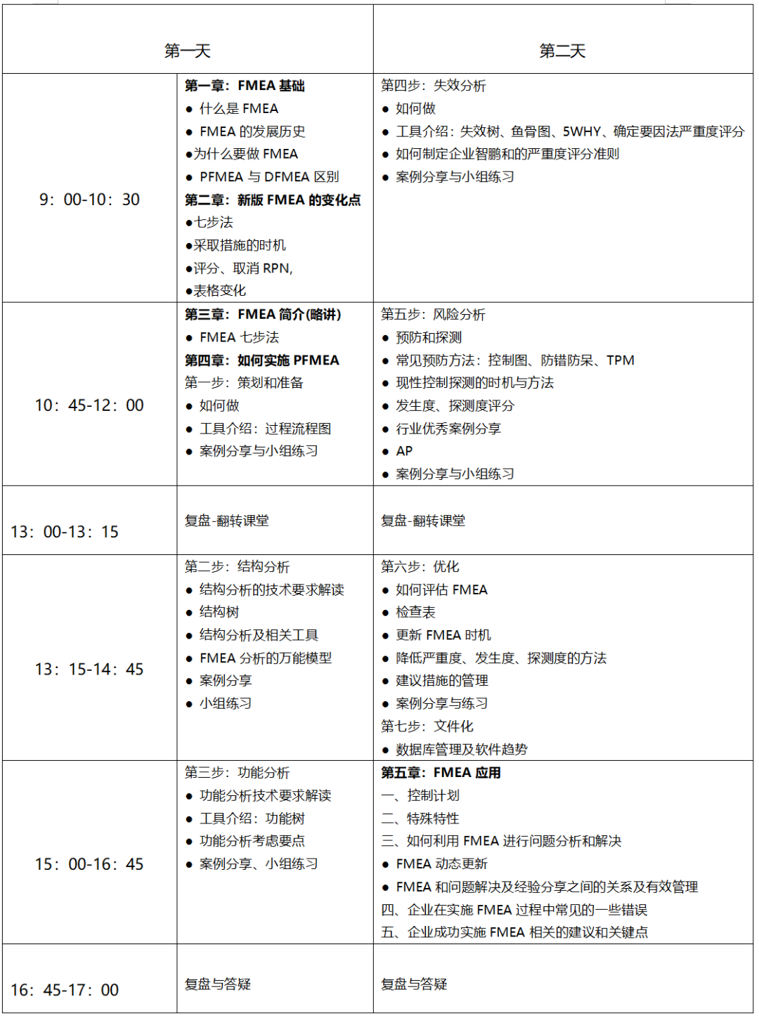 四、掌握企業(yè)推進(jìn)FMEA的策略并分享最佳實(shí)踐,學(xué)會(huì)如何應(yīng)用FMEA進(jìn)行知識(shí)管理,形成企業(yè)技術(shù)沉淀和長(zhǎng)久的技術(shù)競(jìng)爭(zhēng)力。