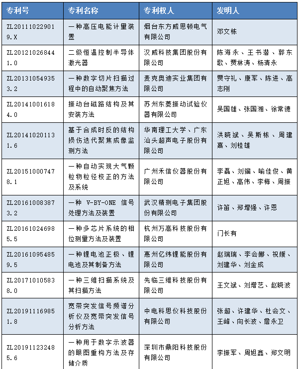 根據(jù)《中國專利獎(jiǎng)評(píng)獎(jiǎng)辦法》規(guī)定,經(jīng)國務(wù)院有關(guān)部門知識(shí)產(chǎn)權(quán)工作管理機(jī)構(gòu)、地方知識(shí)產(chǎn)權(quán)局、有關(guān)全國性行業(yè)協(xié)會(huì),以及中國科學(xué)院院士和中國工程院院士等推薦,中國專利獎(jiǎng)評(píng)審委員會(huì)評(píng)審,社會(huì)公示,國家知識(shí)產(chǎn)權(quán)局和世界知識(shí)產(chǎn)權(quán)組織決定授予“HIV感染的肽衍生物融合抑制劑”等29項(xiàng)發(fā)明、實(shí)用新型專利中國專利金獎(jiǎng),“火星車”等10項(xiàng)外觀設(shè)計(jì)專利中國外觀設(shè)計(jì)金獎(jiǎng);國家知識(shí)產(chǎn)權(quán)局決定授予“填埋氣體和滲濾液傳輸過程的監(jiān)測試驗(yàn)系統(tǒng)”等60項(xiàng)發(fā)明、實(shí)用新型專利中國專利銀獎(jiǎng),“餐飲機(jī)器人(普渡)”等15項(xiàng)外觀設(shè)計(jì)專利中國外觀設(shè)計(jì)銀獎(jiǎng);國家知識(shí)產(chǎn)權(quán)局決定授予“藥品的自動(dòng)分裝與計(jì)量裝置”等777項(xiàng)發(fā)明、實(shí)用新型專利中國專利優(yōu)秀獎(jiǎng),“便攜式彩色超聲診斷儀”等45項(xiàng)外觀設(shè)計(jì)專利中國外觀設(shè)計(jì)優(yōu)秀獎(jiǎng);國家知識(shí)產(chǎn)權(quán)局決定授予廣東省知識(shí)產(chǎn)權(quán)局等7家單位中國專利獎(jiǎng)最佳組織獎(jiǎng),中國電子儀器行業(yè)協(xié)會(huì)等20家單位中國專利獎(jiǎng)優(yōu)秀組織獎(jiǎng),高文等20位院士中國專利獎(jiǎng)最佳推薦獎(jiǎng)。