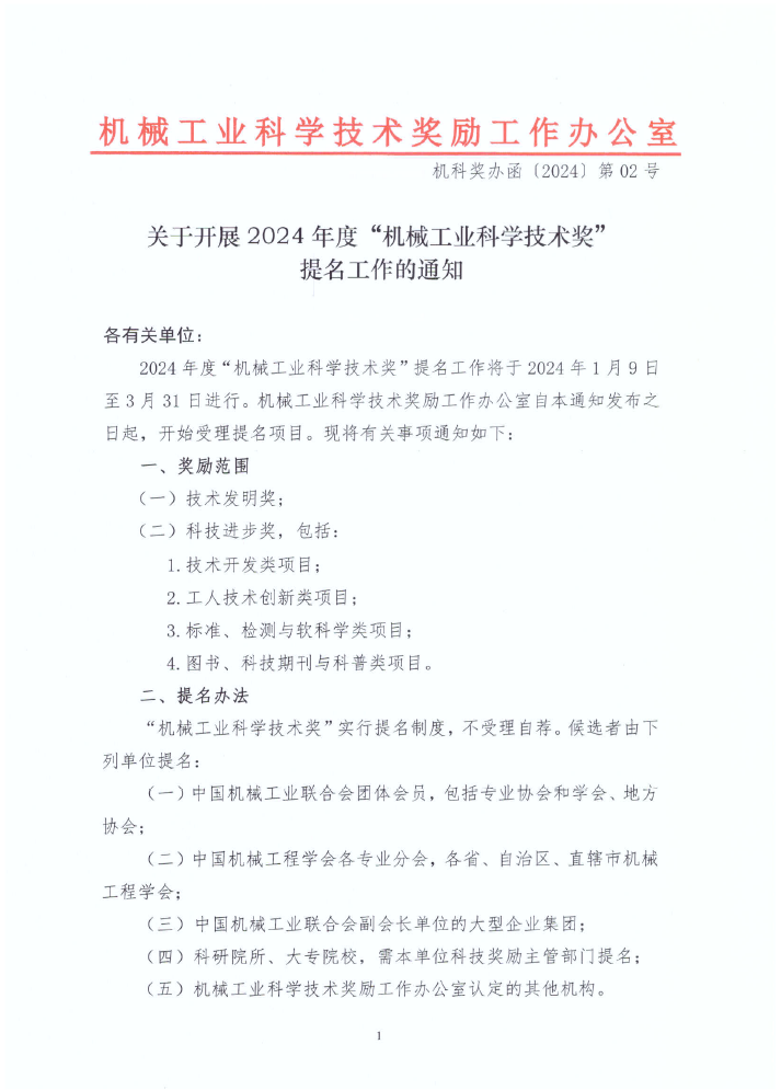 附件1:關于開展2024年度"機械工業科學技術獎"提名工作的通知原件 (PDF)