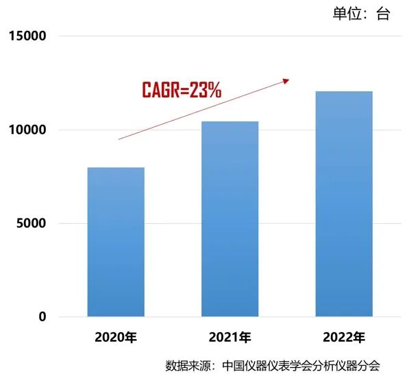 2020-2022年中國市場質譜儀器銷量
