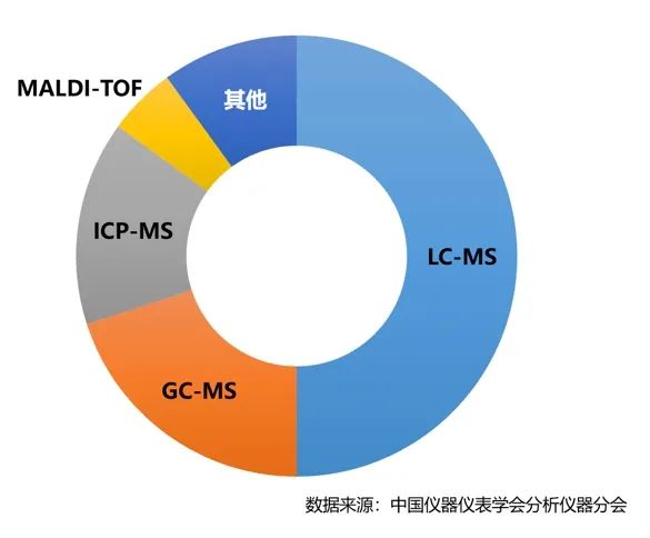根據市場規模的大小劃分,質譜主流機種包括氣相色譜-質譜聯用儀(GC-MS)、液相色譜-質譜聯用儀(LC-MS)、電感應耦合等離子體質譜儀(ICP-MS)、基質輔助激光解吸飛行時間質譜儀(MALDI-TOFMS)等。