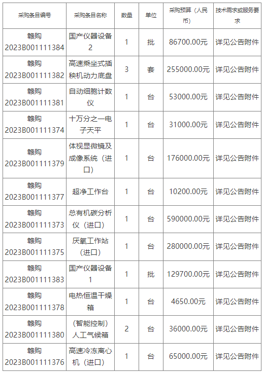 江西農(nóng)業(yè)大學(xué)總有機(jī)碳分析儀等進(jìn)口及國產(chǎn)儀器設(shè)備采購項目 招標(biāo)項目的潛在投標(biāo)人應(yīng)在 江西省公共資源交易網(wǎng)(網(wǎng)址:https://www.jxsggzy.cn/web/) 獲取招標(biāo)文件,并于 2024年02月07日 14點00分 (北京時間)前遞交投標(biāo)文件。