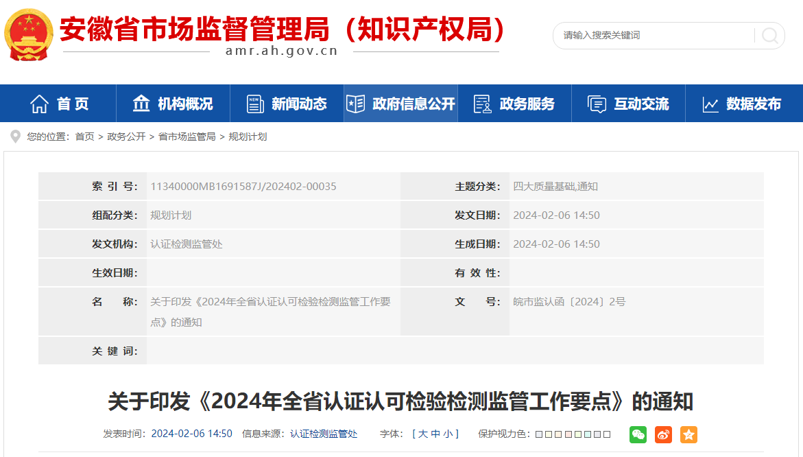 關于印發(fā)《2024年全省認證認可檢驗檢測監(jiān)管工作要點》的通知