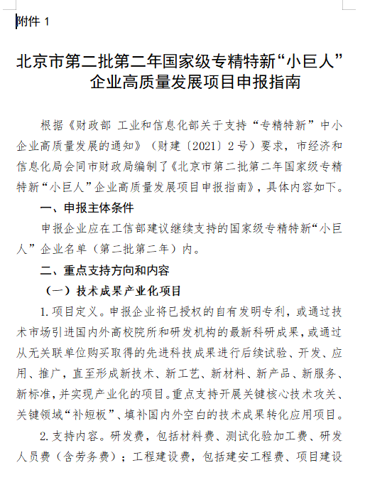 北京公示45家有資格申請第二年高質量發展項目支持小