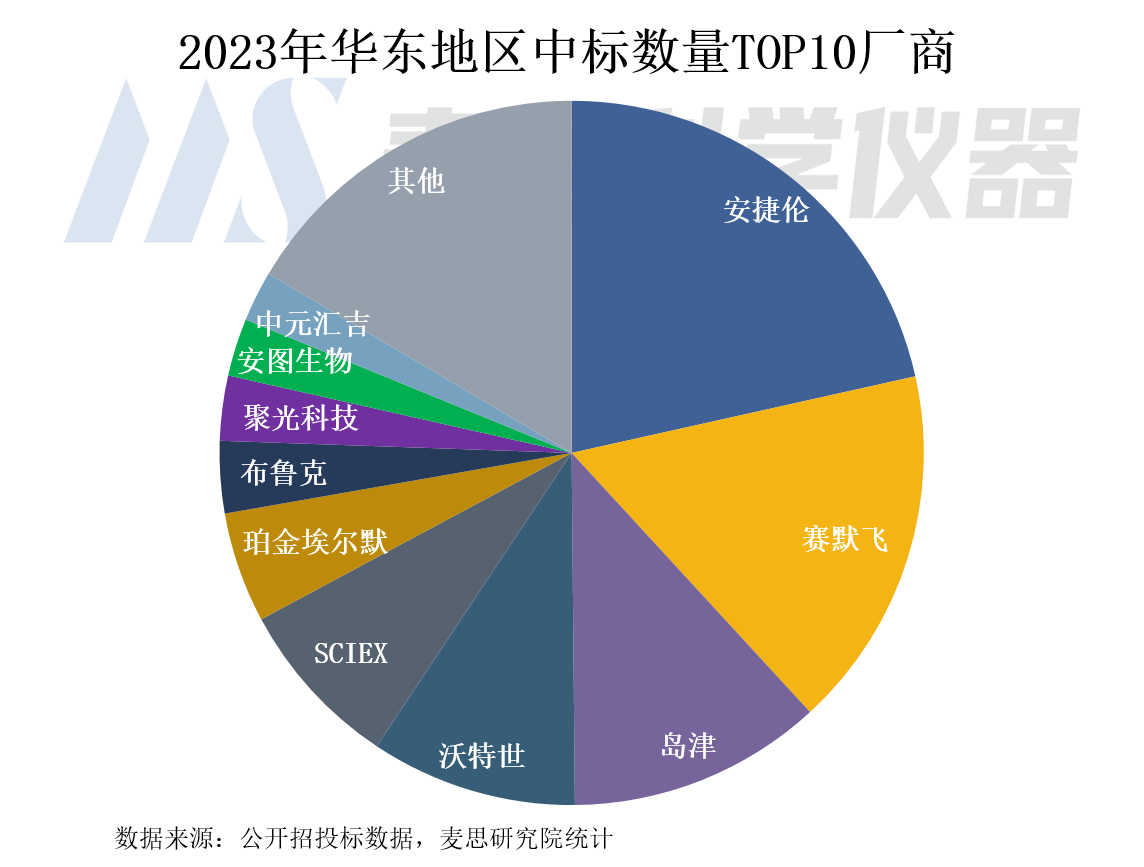科學(xué)研究領(lǐng)域的用戶為科研機(jī)構(gòu),2023年中標(biāo)數(shù)量占比接近20%,是當(dāng)前華東地區(qū)質(zhì)譜儀器中標(biāo)市場(chǎng)的第二大采購(gòu)群體。