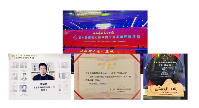 4月29日,寧波東海集團有限公司在第十三屆寧波品牌雙評選活動中榮獲“金口碑品牌”和“品牌年度領軍人物”兩項大獎。