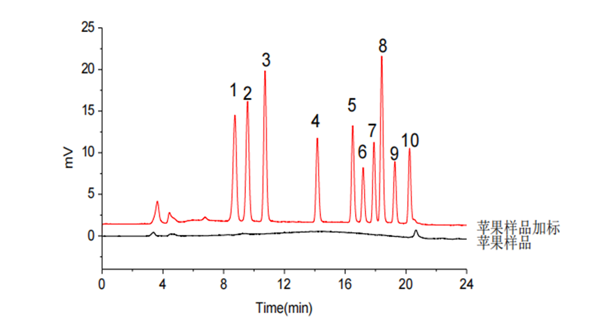 圖2 蘋(píng)果樣品加標(biāo)色譜圖