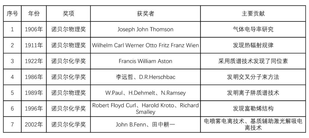 1 與質譜原理及技術發展相關的諾貝爾獎項