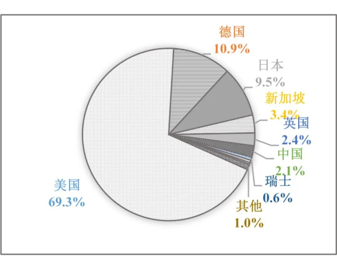 截至2021年底,我國高校院所大型質譜儀器中,97.9%為進口儀器,國產儀器數量僅230套,占比2.1%。超七成的質譜儀器來自美國,數量達到0.75萬(臺/套),原值總額為134.7億元。進口自德國和日本的質譜儀器數量也均超過1000臺(套)(圖5)。