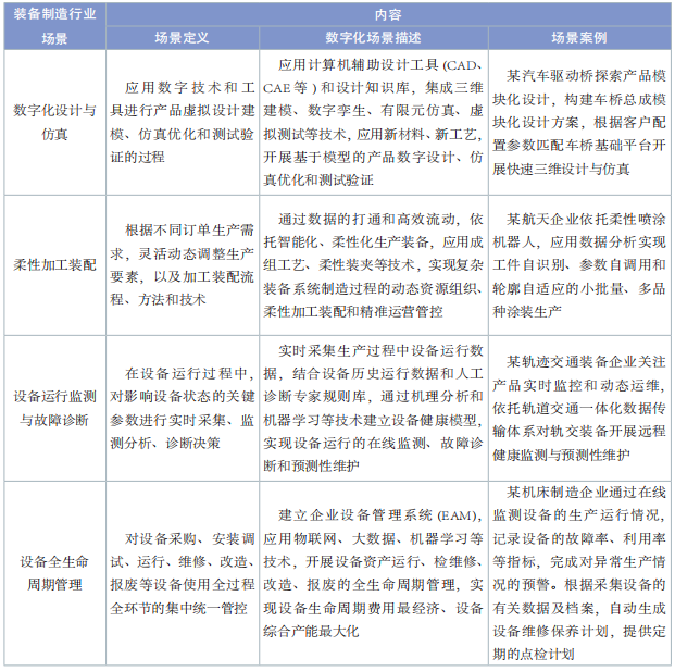 表2 裝備制造行業(yè)數(shù)字化轉(zhuǎn)型典型場景內(nèi)容