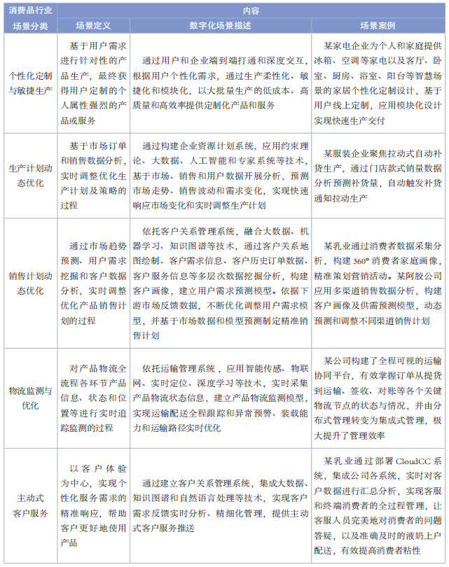 表 4 消費(fèi)品行業(yè)數(shù)字化轉(zhuǎn)型典型場景內(nèi)容