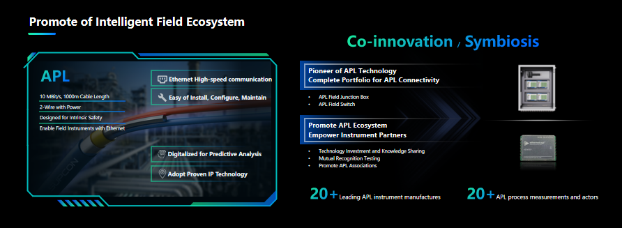 Nyx采用基于APL的現(xiàn)場連接技術(shù),支持2區(qū)本安防爆的現(xiàn)場連接箱和APL模組,實現(xiàn)儀表IP化,通信速率提升100倍以上,推動全數(shù)字化現(xiàn)場傳感與執(zhí)行,實現(xiàn)智能化工廠數(shù)據(jù)互聯(lián)互通。中控技術(shù)始終秉持共創(chuàng)、共享、共生的理念,積極打造Ethernet-APL生態(tài),可提供包括電源交換機、現(xiàn)場交換機、智能儀表等全線APL產(chǎn)品。