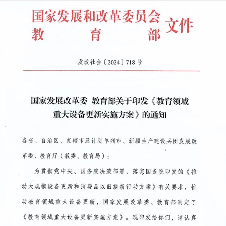 《教育領域重大設備更新實施方案》是為推動教育領域的設備現代化,提升教學和科研水平,由國家發改委和教育部聯合印發?!督逃I域重大設備更新實施方案》,明確了支持內容、支持標準、遴選原則、申報要求以及保障措施。