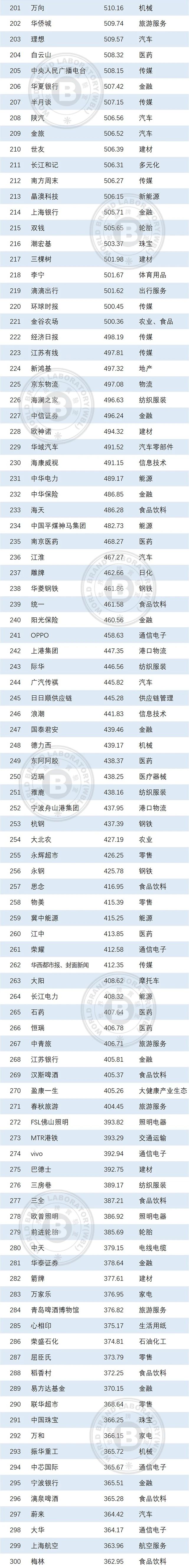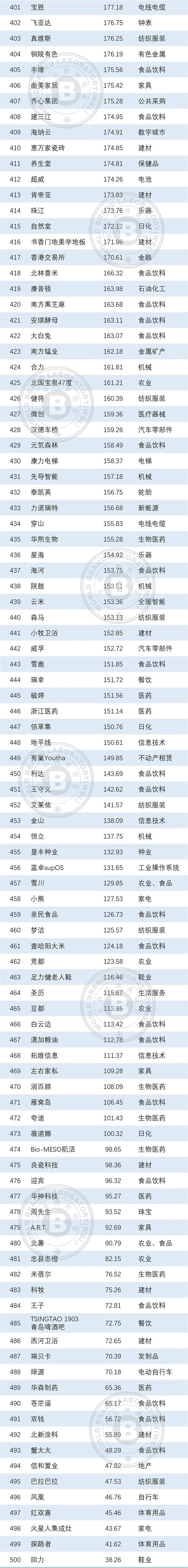 本年度《中國500最具價(jià)值品牌》排行榜中,共有來自食品飲料、輕工業(yè)、建材、傳媒、紡織服裝、醫(yī)藥、機(jī)械等在內(nèi)的24個(gè)相關(guān)行業(yè)的品牌入選。其中食品飲料業(yè)依然是入選品牌最多的行業(yè),共有80個(gè)品牌入選,占總?cè)脒x品牌數(shù)的16.00%;入選數(shù)量位居第二到第五的行業(yè)分別是輕工(41個(gè))、通信電子IT(39個(gè))、建材(36個(gè))、傳媒(32個(gè))。在衡量品牌的忠誠度時(shí),世界品牌實(shí)驗(yàn)室參考了我信品牌(iTrust Rating)的評(píng)級(jí)數(shù)據(jù);在衡量品牌的領(lǐng)導(dǎo)力特別是ESG(環(huán)境、社會(huì)和治理)評(píng)分時(shí),參考了超級(jí)財(cái)經(jīng)(SuperFinance)的ESG數(shù)據(jù)庫。同時(shí)還借用了低碳國際(Carboncare International)對(duì)品牌企業(yè)碳排放的計(jì)量,以推動(dòng)品牌添加“碳排放評(píng)分”標(biāo)簽。