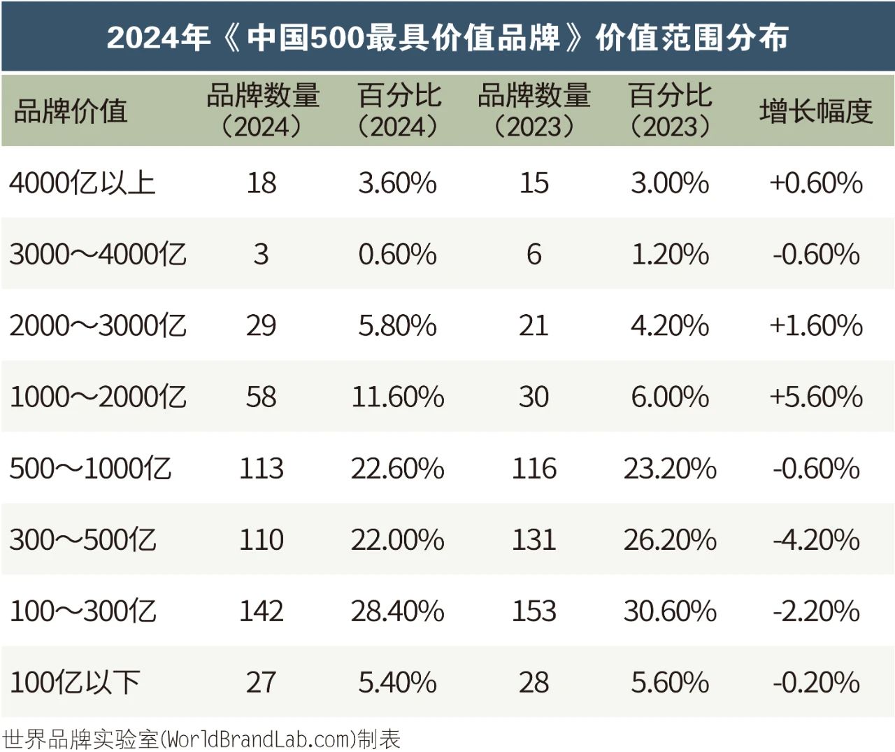 2024年《中國500最具價(jià)值品牌》的總價(jià)值為38.57萬億元,比去年增加4.24萬億元,增幅為12.35%。世界品牌實(shí)驗(yàn)室學(xué)術(shù)委員會(huì)主席、牛津大學(xué)(Oxford)營銷學(xué)榮譽(yù)教授斯蒂芬·沃格(Steve Woolgar) 博士表示:“在過去的20多年中,我目睹了中國品牌的快速成長,有的已經(jīng)具有強(qiáng)大的世界影響力,這些品牌包括國家電網(wǎng)、海爾、中化、華潤、中國南方電網(wǎng)、保利、河鋼、中國華電、五糧液、徐工、青島啤酒、中國國航、北大荒、東方電氣、通威、波司登、飛鶴、中國航油、恒力、協(xié)鑫、圣象、九牧、長虹、雙星輪胎等。”