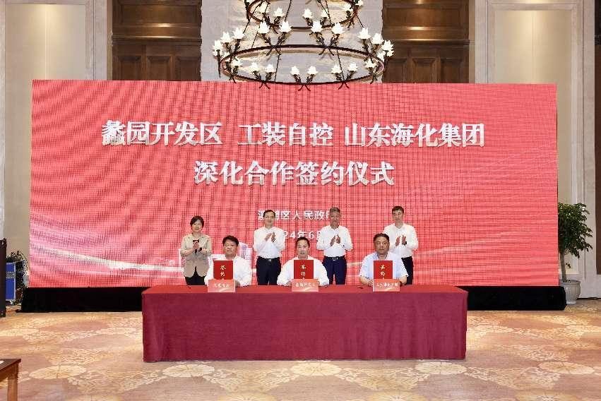 6月25日,無錫工裝與山東?;瘓F有限公司在無錫舉行戰略合作協議簽約儀式。濱湖區委書記孫海東與?;瘓F黨委書記、董事長孫令波一行親切會談并見證簽約。?;瘓F黨委副書記、總經理王永志參加座談并出席簽約儀式,濱湖區及蠡園開發區相關部門領導陪同參加活動。