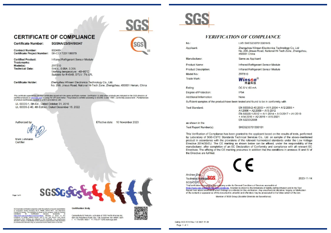 此前,ZRT510傳感器還通過了美標、歐標(UL/IEC 60335-2-40:2022)認證,獲得了2023年第7屆中國(國際)傳感器創新創業大賽企業組二等獎、中國室內健康舒適環境CCMSA-Wie Tec創新獎多項殊榮。