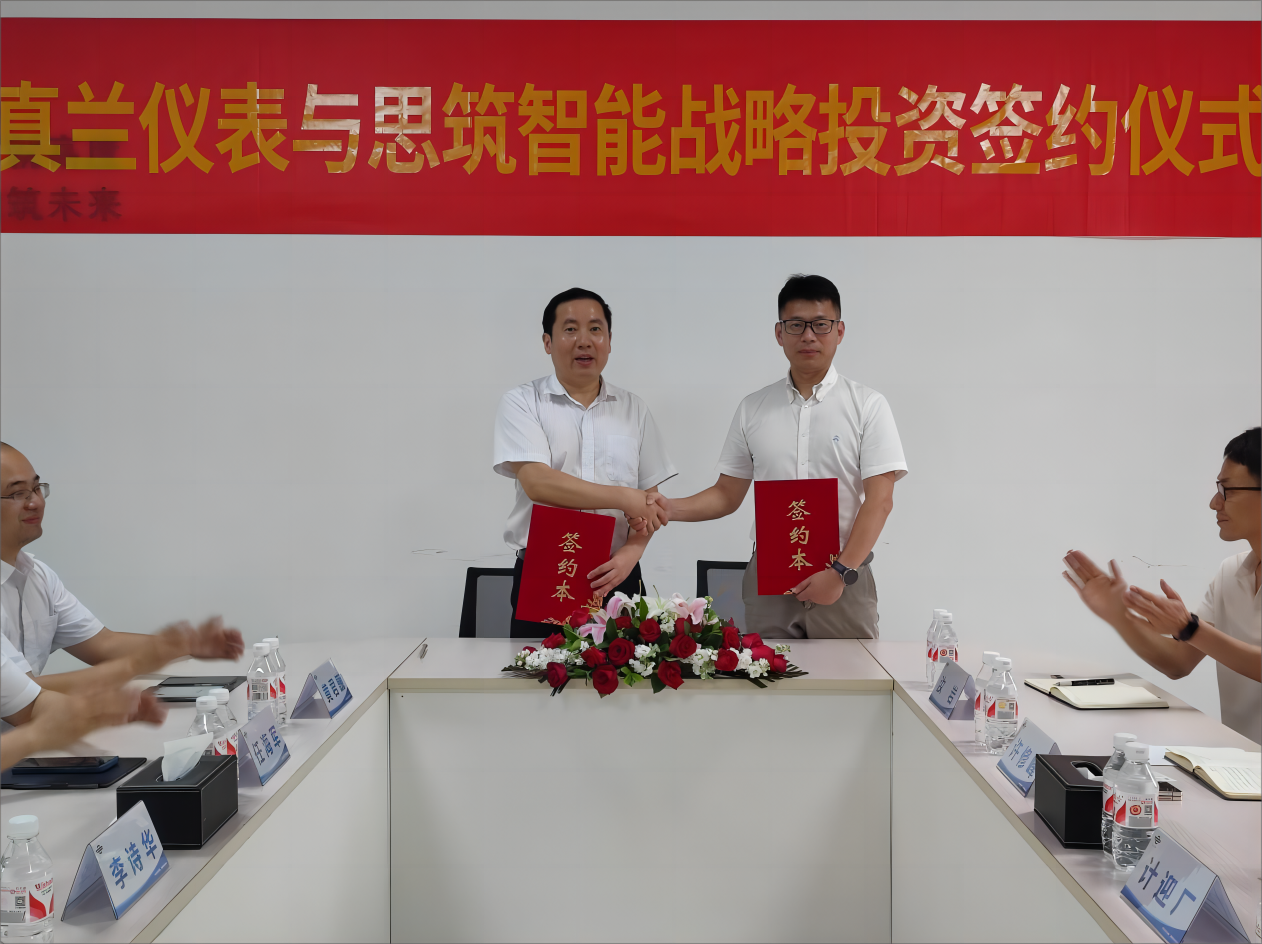 真蘭儀表董事長(zhǎng)兼總裁李詩(shī)華、執(zhí)行總裁任海軍、副總裁兼董事會(huì)秘書(shū)王文軍、財(cái)務(wù)中心兼投資部總經(jīng)理黃君巍,思筑智能董事長(zhǎng)兼總經(jīng)理計(jì)迎廠、副董事長(zhǎng)許修峰、創(chuàng)始人及董事朱趙君等領(lǐng)導(dǎo)出席簽約儀式。