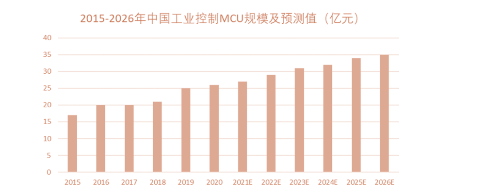 全球工業(yè)自動(dòng)化與控制市場(chǎng)的廣闊前景,勢(shì)必強(qiáng)勁推動(dòng)MCU需求增長(zhǎng)。據(jù)統(tǒng)計(jì),2020年工控對(duì)MCU需求規(guī)模達(dá)到26億元,預(yù)計(jì)至2026年,市場(chǎng)規(guī)模將達(dá)到35億元。